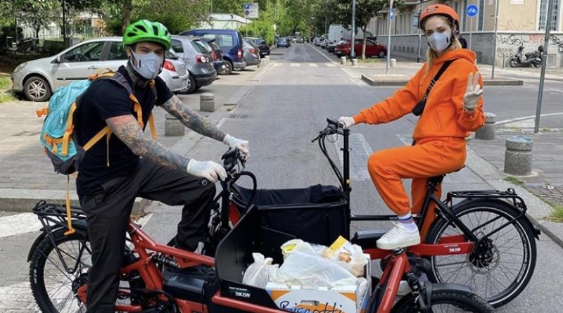 In sella così ad una bici la coppia Ferragnez si è presentata all’orto mercato di Milano per raccogliere e imbustare alimenti a favore delle famiglie in difficoltà : “Abbiamo raccolto casse di frutta e verdura insieme ai volontari”, racconta Fedez, “li abbiamo imbustato per ogni famiglia per poi recarci in uno dei tanti centri di raccolta della città per poi distribuire la spesa ad alcune famiglie della zona.”