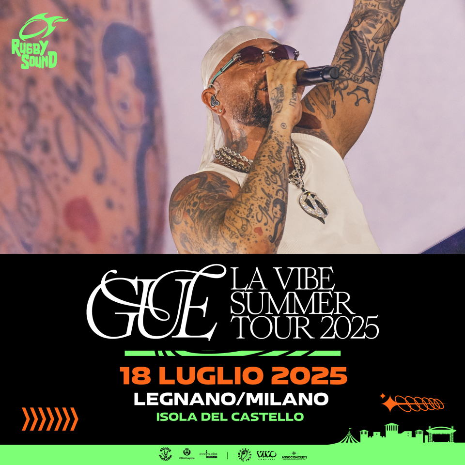 Nuova data in calendario da segnare per Rugby Sound Festival. L’evento del legnanese, divenuto un appuntamento fisso per l’estate in musica ospita il 18 luglio, Gué che sarà sul palco dell’Isola del Castello di Legnano (MI) per una data di La Vibe Summer Tour 2025.